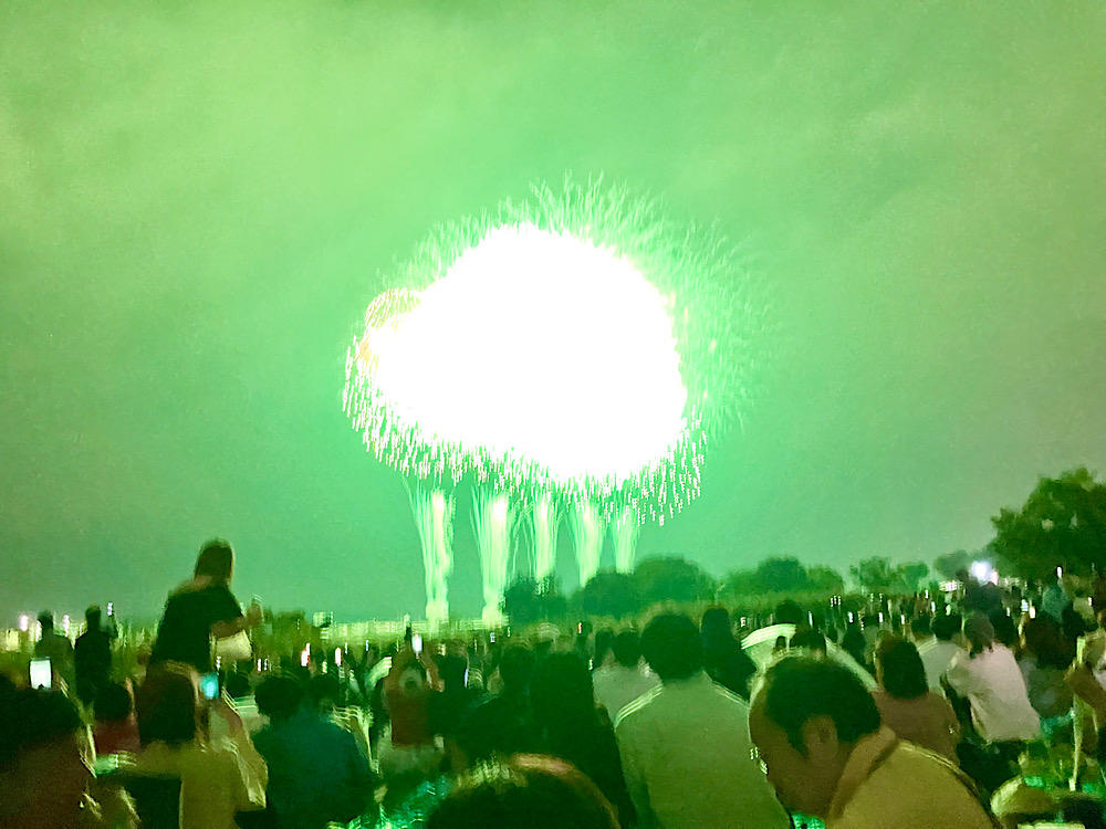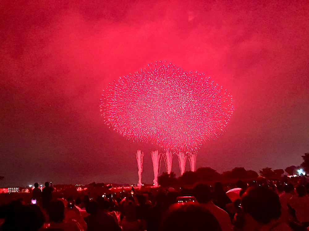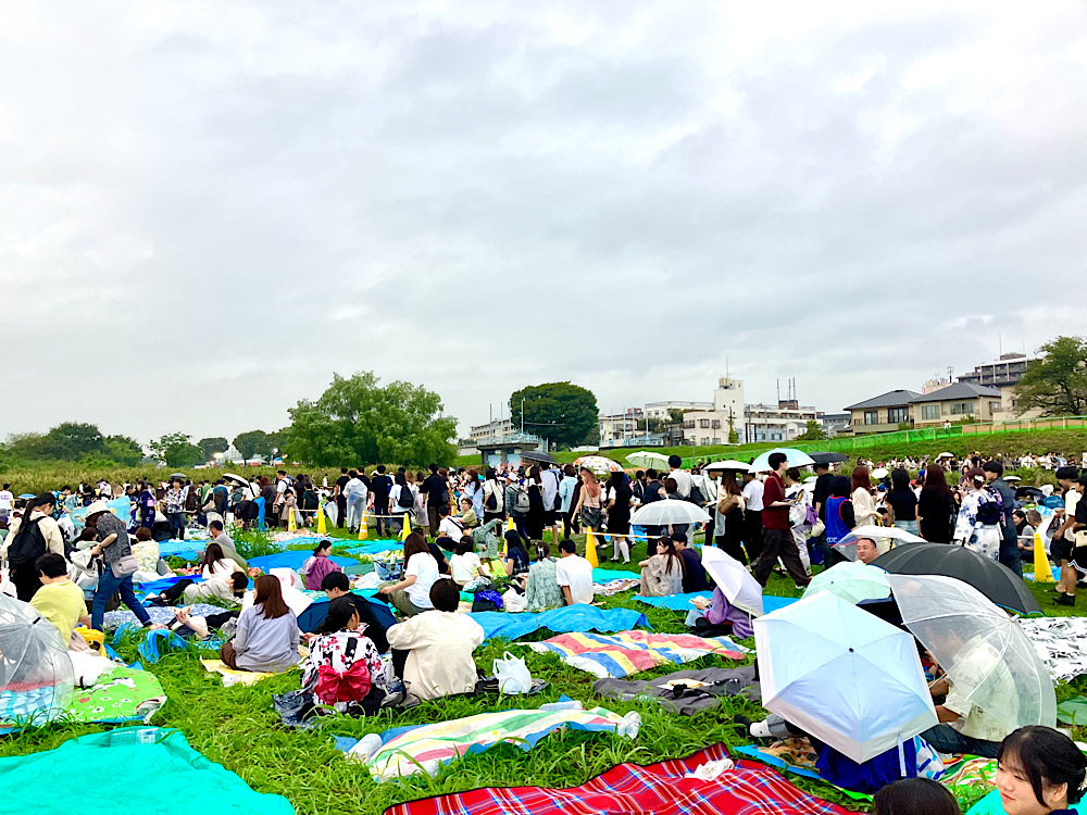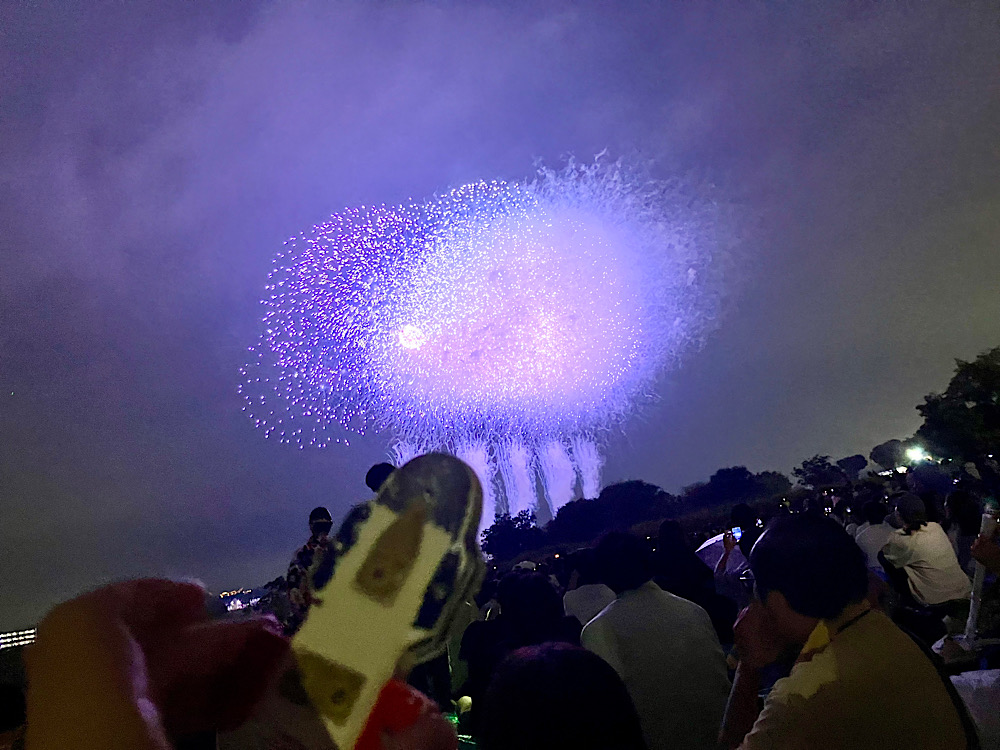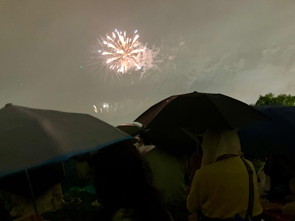 途中雨が降ってきて花火じゃなく一斉に傘が咲いたのもご愛嬌
