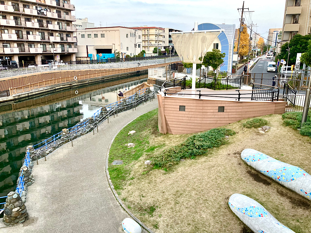 船を模した入り口の公園