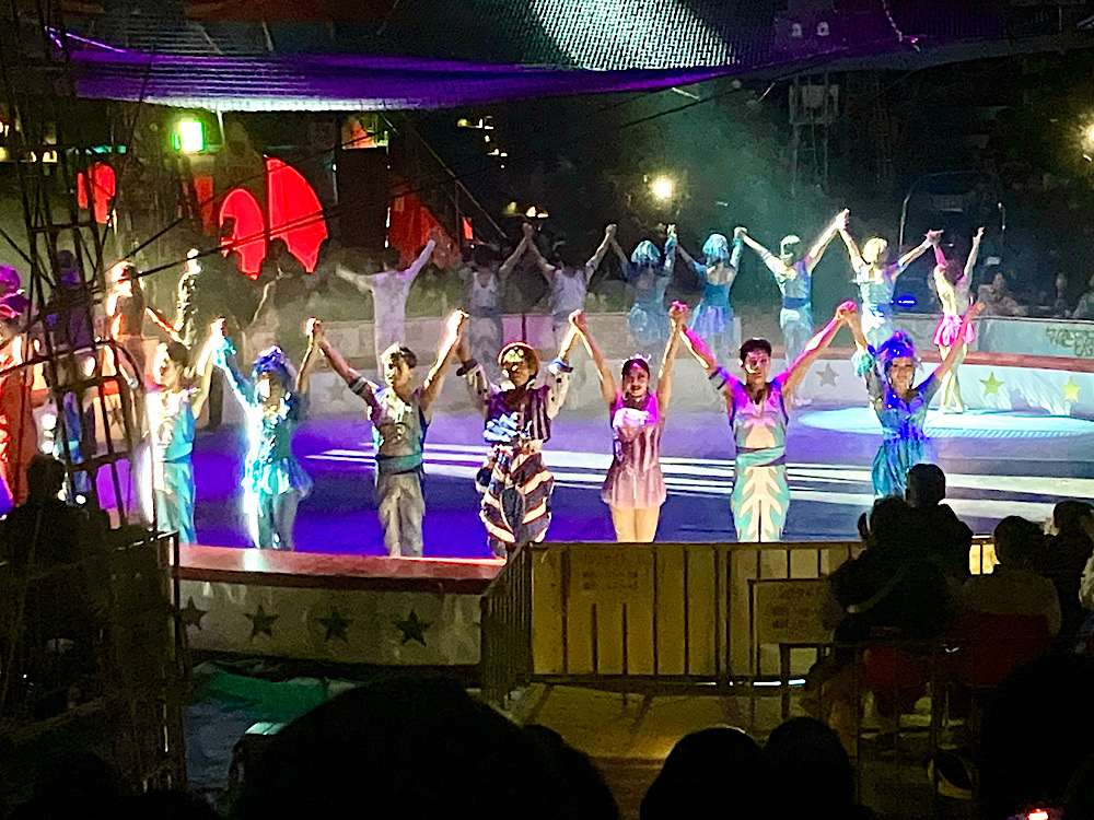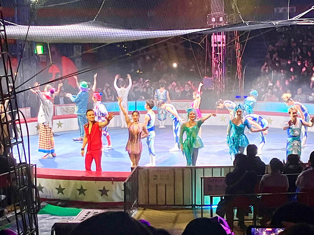 新体操、ジャグリング、大道芸、ピエロによるコント、イリュージョンマジック、体操、動物芸……などなどの、ありとあらゆるパフォーマンスを詰め込んで、大掛かりな装置で究極に昇華させた総合エンタメって感じ