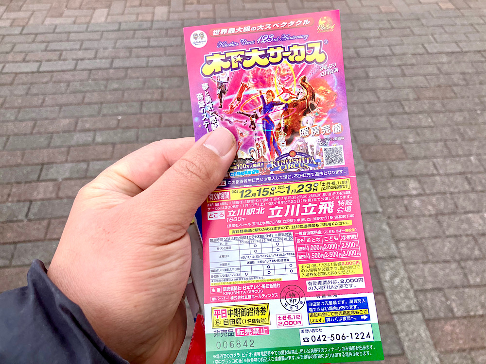 1月19日、ほうじ茶さんから木下大サーカスのチケットをいただいたので