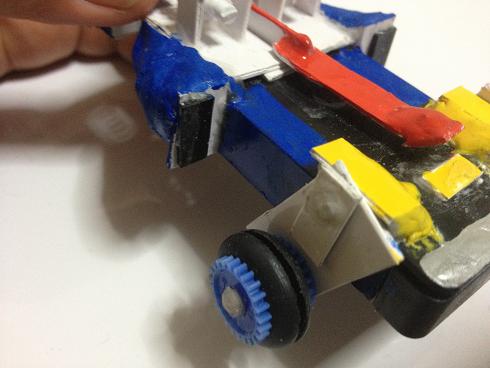 ラバーローラーが前方のラバーと接触して、ローラーの回転がストップし、機体にブレーキをかける!!