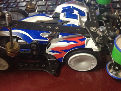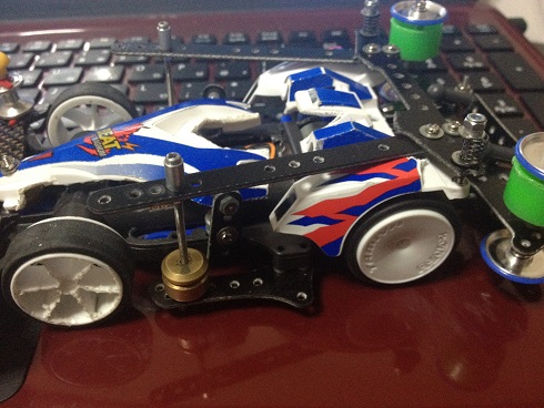 ミニ四駆 ビートマグナムの上下制動徹底見直し コメントを残す Tweet Pocket 前回のレースでは、制動性の甘さが敗北に繋がったと考えられるので、もう一度マスダンパーの位置や可動域を見直し 可動域は大きすぎても良くないって事で狭めていたんですが、狭めすぎてもマスダンパーとしての意味がないって事で可動域の増加 更に、宙に浮いた時にダンパーが持ち上がるようにバネを追加 これで以前よりマシになったはず