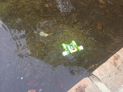 ただ陸を走らせるだけなら簡単だけど、やっぱり外に来たんだからオフロード走らせないと意味ないしね