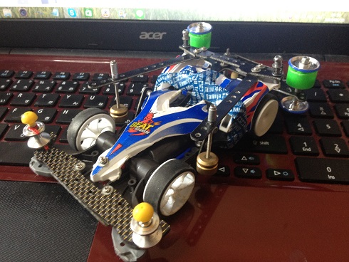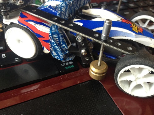 ジャパンカップ用マシン ミイラビートマグナム コメントを残す Tweet Pocket ジャパンカップ東京大会1に出場するためのマシン完成! ミイラビートマグナム!! なぜミイラかって? トレッサ横浜でボディキャッチ付けるための突起が折れたからミイラみたいにマルチテープでグルグル巻きにして固定しているからです 基本的な性能は前とほぼ同じですが 今まで提灯で叩いてたFRPをなくして、バネのみで固定してます なのでグラグラです。が、マスダンパーとしてなら叩くよりグラグラしてた方が効果あるんじゃないかなと判断 どんな走りを見せてくれるのか……!
