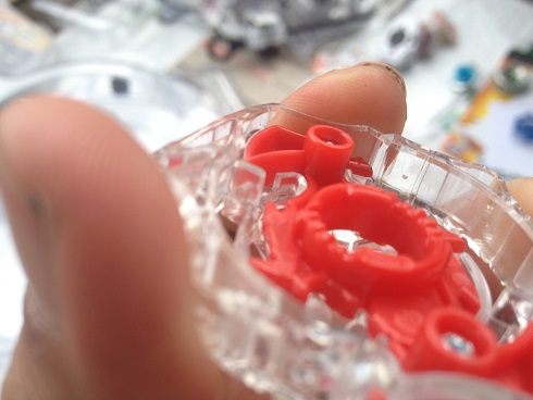 ベイブレードバーストのバースト機能は、ようはレイヤーの取り付けを、旧爆転ベイのアタックリングの取り付け方向を回転方向と逆にしたもので、それにバネを取り付ける事によって、相手とぶつかった時にレイヤーがズレて、飛び出すようにしてるという、ファントムフォックスやクロスアームズと同じような構造になってます