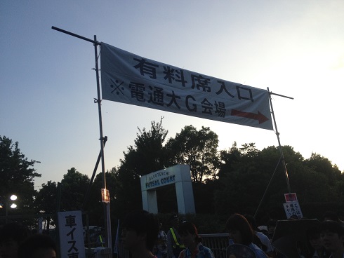 会場付近まで来るとさすがに屋台とかでごった返してますが、有料席は更に先へ進むようです