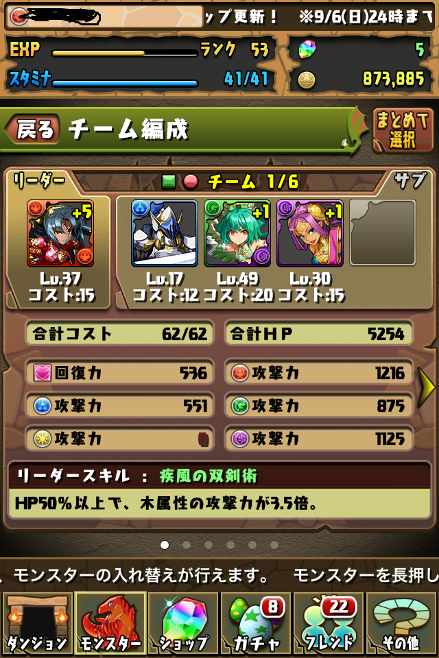 コストを限界まで使ってなかなかバランスの良いパーティになってるんじゃないかと思う 無限回廊も31まで進んだし、良い調子