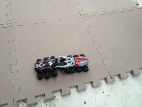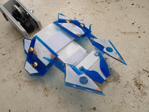 シャーシのリア面にマジックテープを貼って、リアにフライホイールを付けた方が駆動ギミックは効率的なのではないかと!