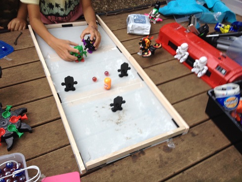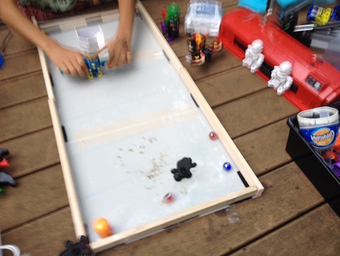 そんな事してたら、ビーダマンを広げてた方のテーブルに7歳くらいの子供たち三人ほど寄ってきた