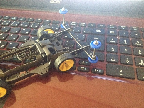 FPRの削り粉+瞬間接着剤は強力……! ARシャーシも限界まで軽量化するぞ!