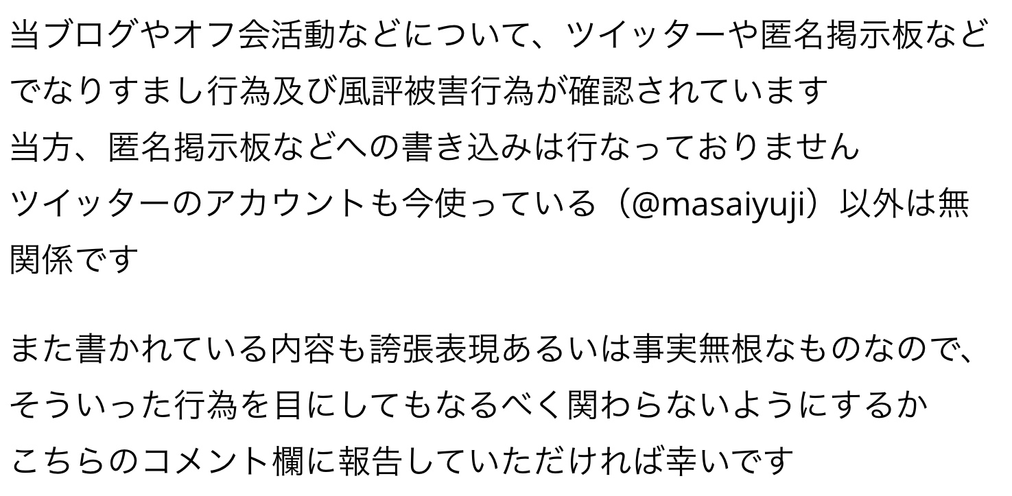 【注意喚起】当ブログや活動に対するなりすましや風評被害行為について