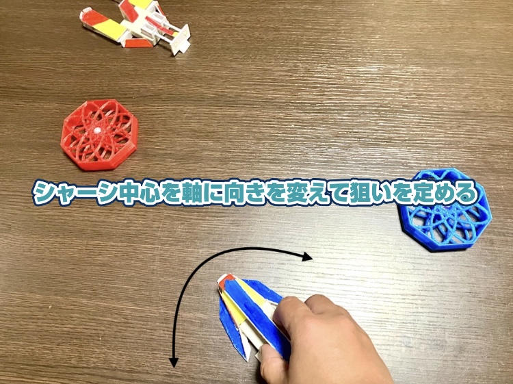 シュート前に機体に触れて、向きを変えたり(シャーシ中央を軸にする)